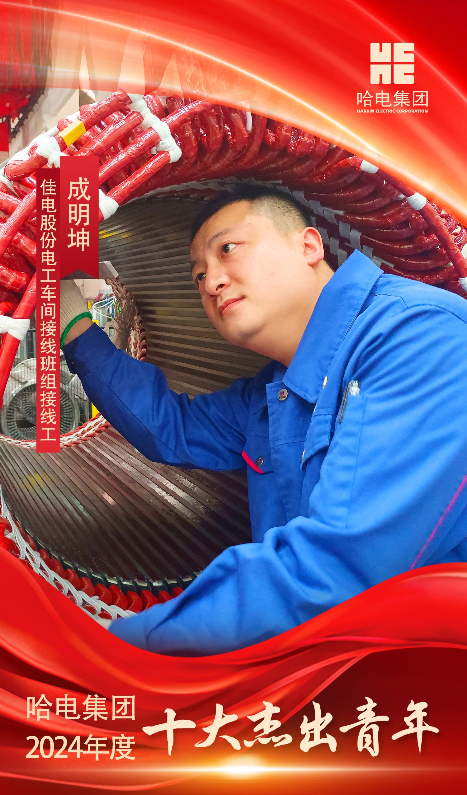 成明坤,自2009年入职以来,扎根电机定子绕组接线岗位16年,始终以车间一线为人生舞台,以实际行动践行工匠精神,2025年荣获“佳木斯市劳动模范”称号。